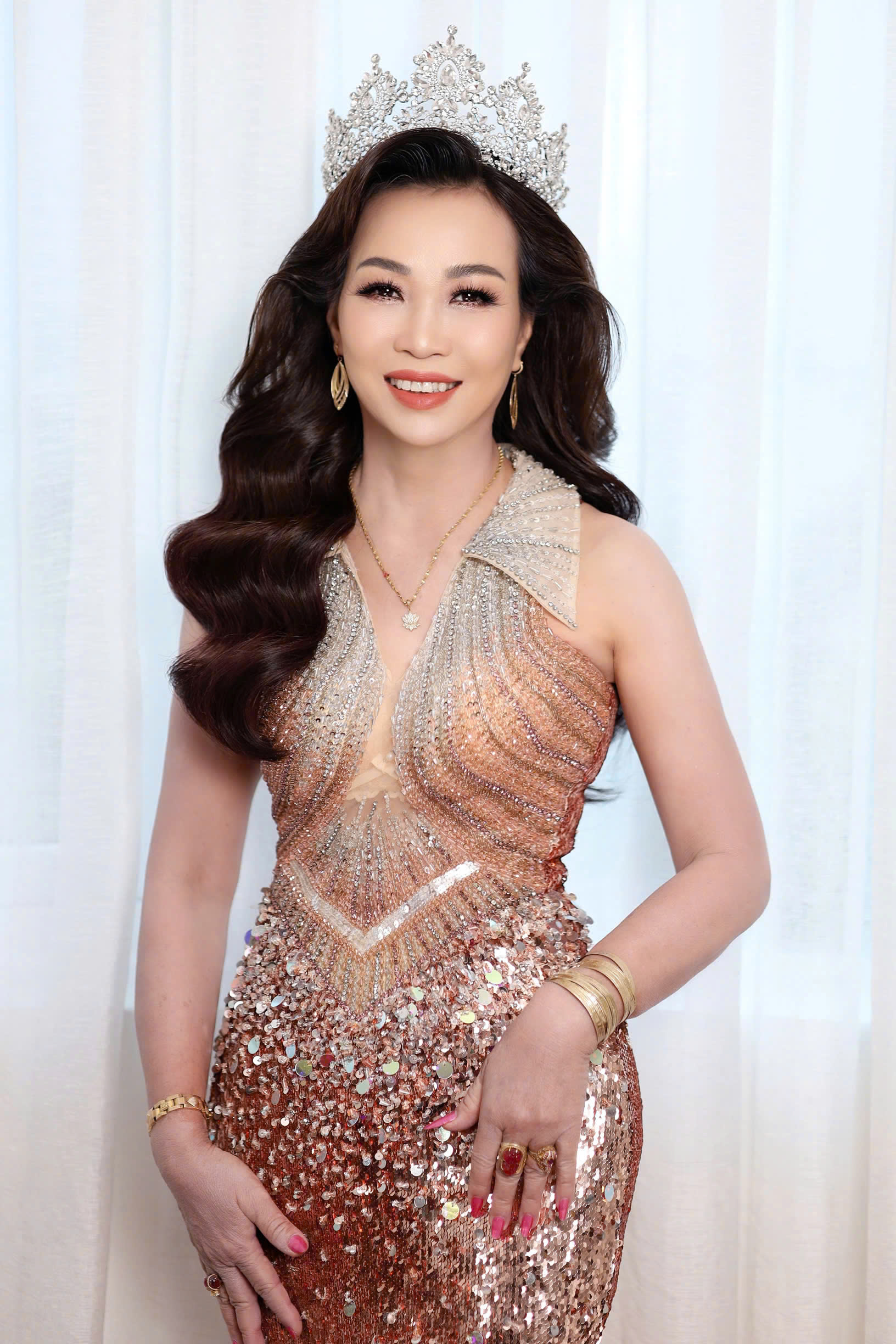 Tại đêm chung kết năm nay, doanh nhân Nguyễn Thị Ngọc Lan xuất hiện nổi bật với bộ dạ hội đính kết tinh xảo, toát lên vẻ đẹp quý phái, sang trọng nhưng vẫn giữ nét nhẹ nhàng, gần gũi. Vai trò Ban Cố vấn được chị thể hiện bằng sự lắng nghe, thấu cảm và kinh nghiệm thực tế – những yếu tố quan trọng để góp phần xây dựng hình ảnh chuẩn mực cho một Hoa hậu doanh nhân thời đại mới.