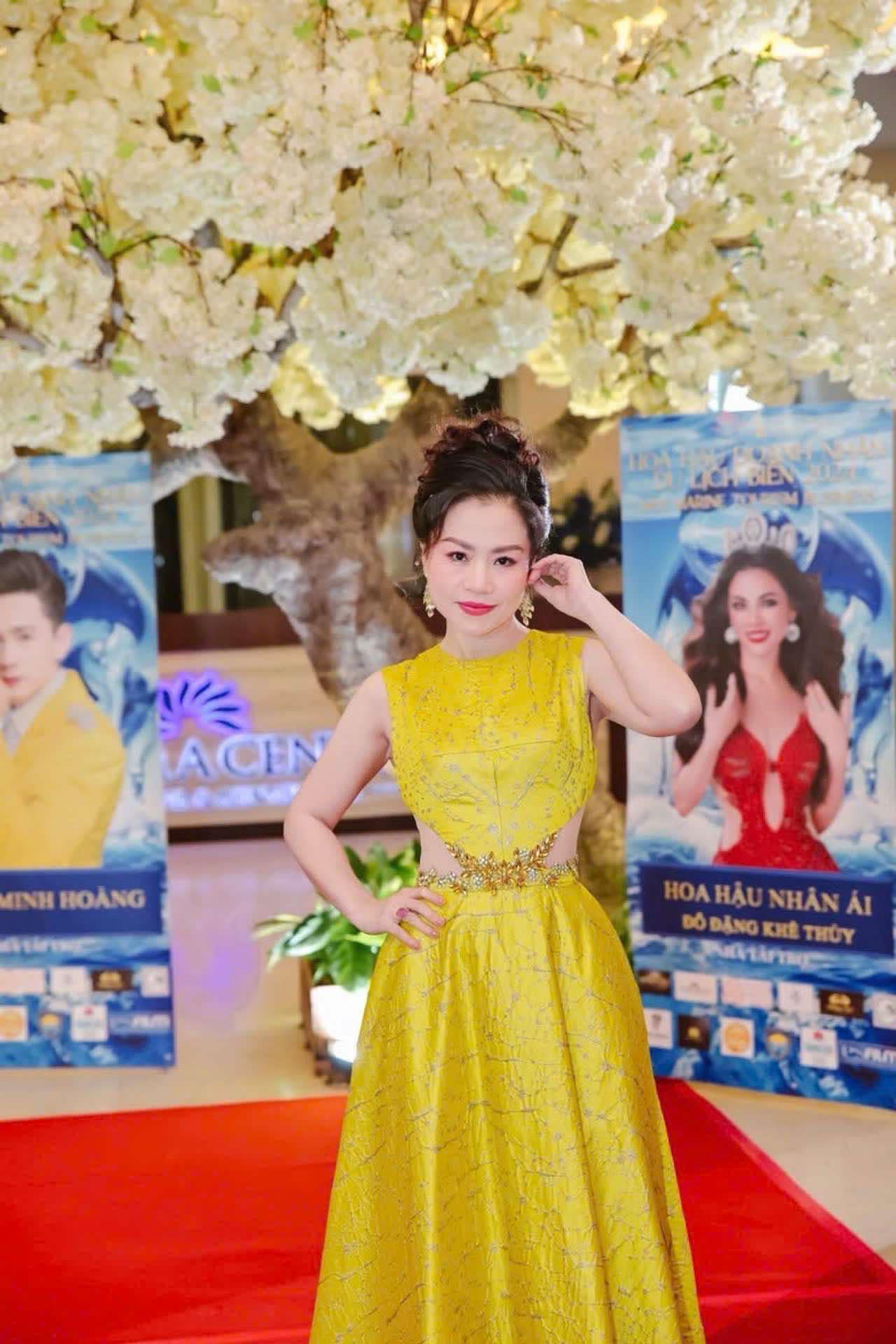Xuất hiện trên sân khấu trong bộ đầm thanh lịch màu vàng, Võ Thị Hương chọn cho mình phong cách trang điểm nhẹ nhàng, tôn lên vẻ đẹp tự nhiên và sự thân thiện. Hình ảnh của cô như một lời khẳng định rằng sự tự tin và giản dị luôn là điều thu hút nhất.